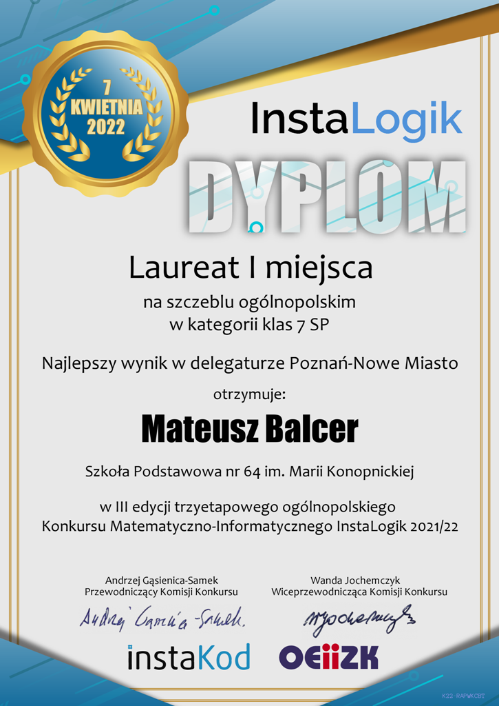 Znane są już wyniki trzyetapowego ogólnopolskiego konkursu matematyczno – informatycznego InstaLogik.Niezmiernie miło
