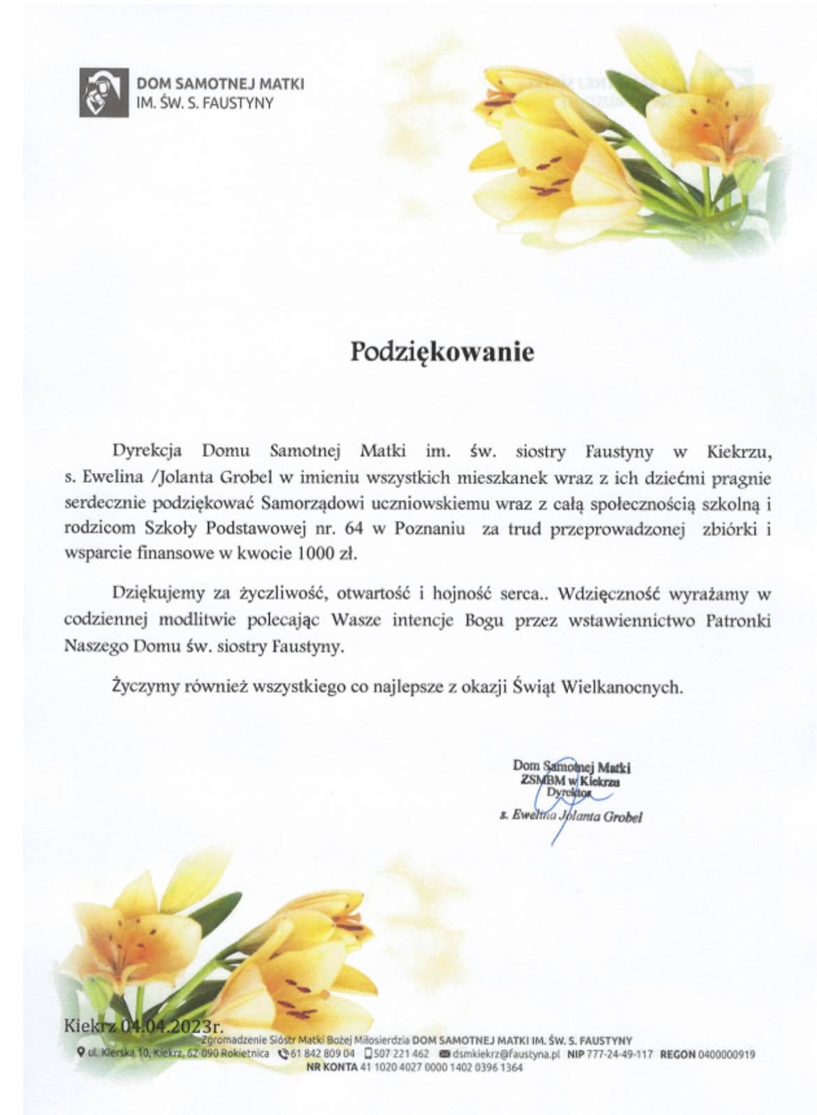Z ogromną radością pragniemy poinformować, że pieniądze zebrane podczas dyskoteki szkolnej oraz