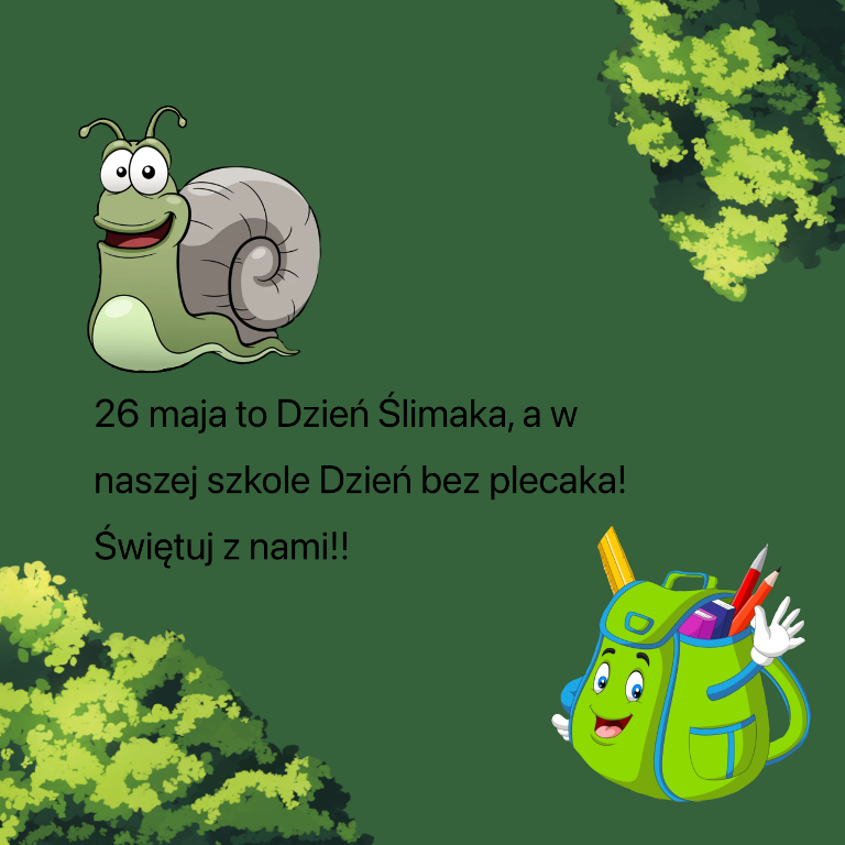 26 maja w naszej szkole będziemy świętować Dzień Ślimaka. Tego dnia podręczniki