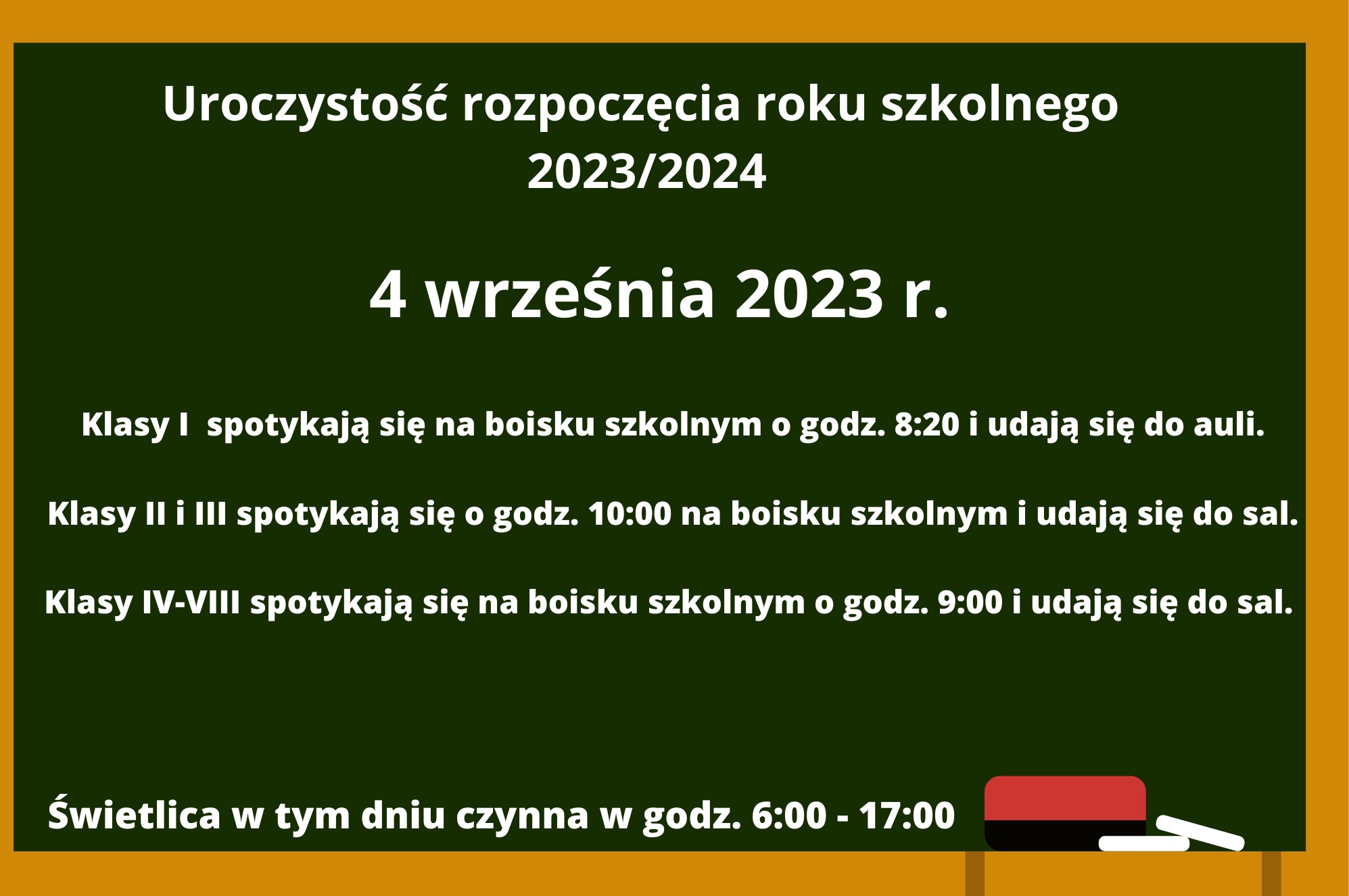 Szanowni Rodzice, drodzy Uczniowie! Uroczystość rozpoczęcia roku szkolnego odbędzie się 4 września: