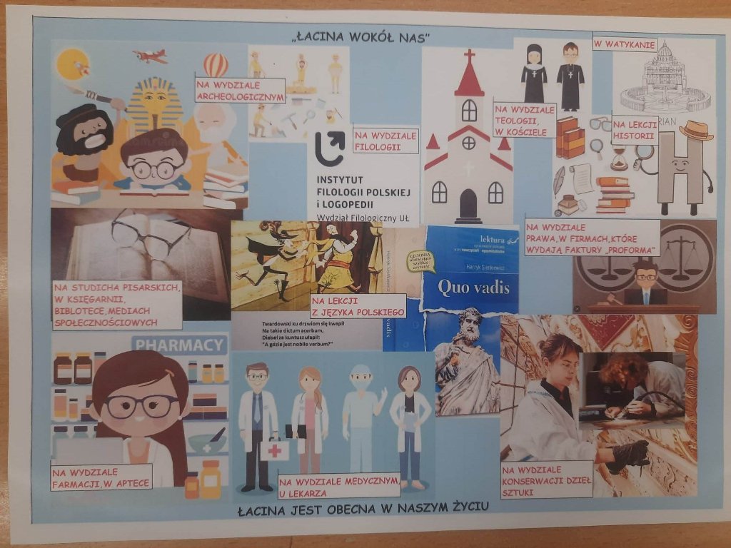 Uczniowie klas 4-8 wykonali plakaty reklamujące łacinę we współczesnym świecie. I miejsce: