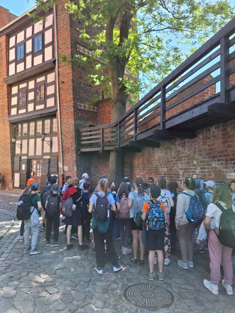 Zwiedziliśmy różne zakątki Starego i Nowego Miasta. Dowiedzieliśmy się czym charakteryzowało się średniowieczne budownictwo🧱 i widzieliśmy dom Mikołaja Kopernika, który odkrył🔭, że to wcale nie nasza planeta jest ,,pępkiem” wszechświata😱. Mieliśmy też bliskie spotkanie z osłem i wiemy, kto uchronił Toruń od inwazji żab🐸🐸🐸.