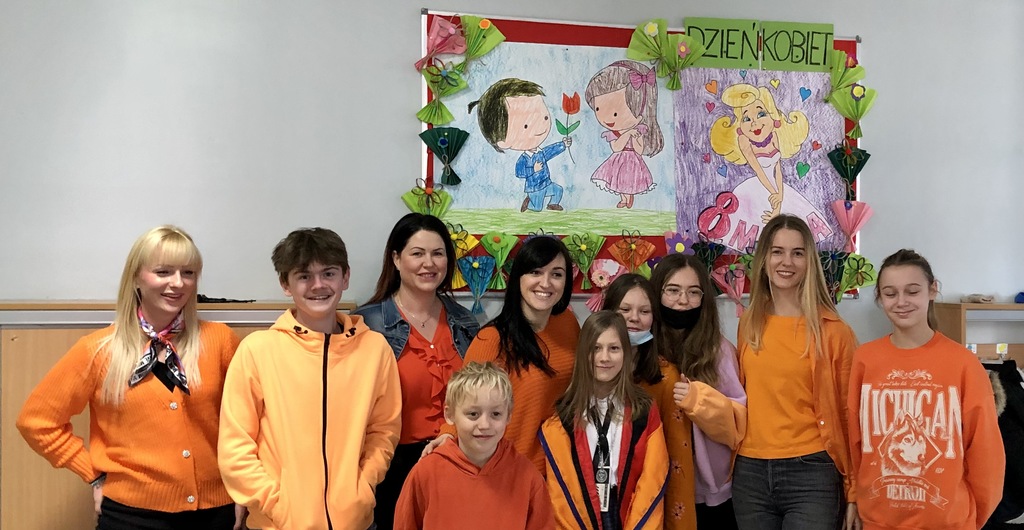 Dziś świętowaliśmy Dzień Kobiet. Ubiory w kolorze pomarańczowym nie były przypadkowe – miały one symbolizować odwagę i siłę kobiet, które nie bały się wytyczać nowych ścieżek. Uczniowie opowiadali ciekawostki z życia i działalności mentorek, dowiedzieliśmy się m.in., że noblistka Olga Tokarczuk jest wegetarianką, Wanda Rutkiewicz jako pierwsza Europejka zdobyła Mount Everest, a Anna Tomaszewicz-Dobrska była pierwszą lekarką z oficjalnym dyplomem medycznym. Wszystkim bardzo serdecznie dziękujemy za włączenie się do akcji i wspólne świętowanie tego wyjątkowego dnia, a kobietom życzymy dużo radości i wiary, że wszystko, o czym marzą – się wydarzy. Samorząd Uczniowski z opiekunkami