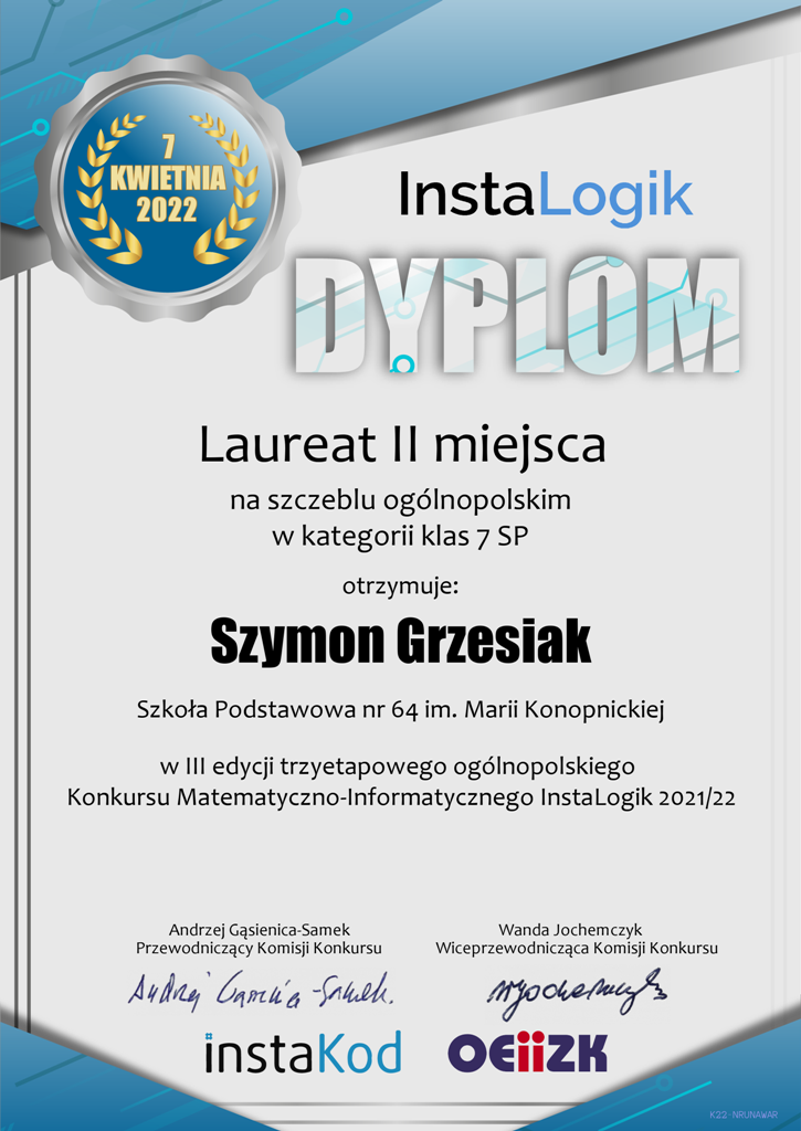 Znane są już wyniki trzyetapowego ogólnopolskiego konkursu matematyczno – informatycznego InstaLogik.