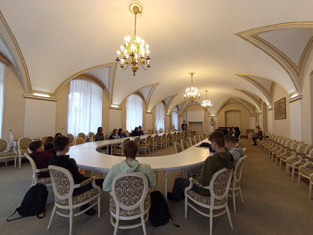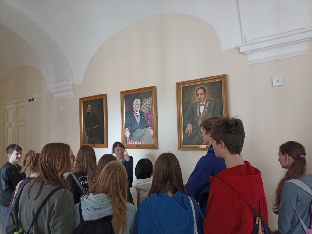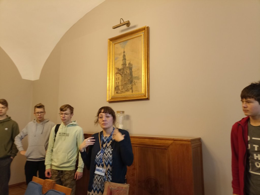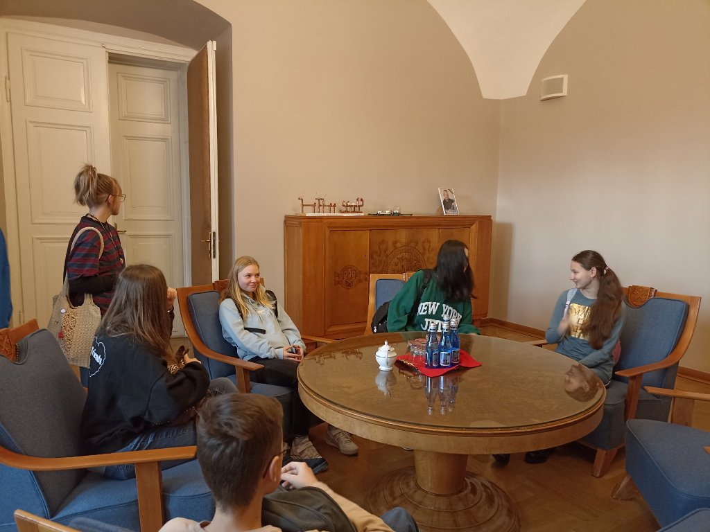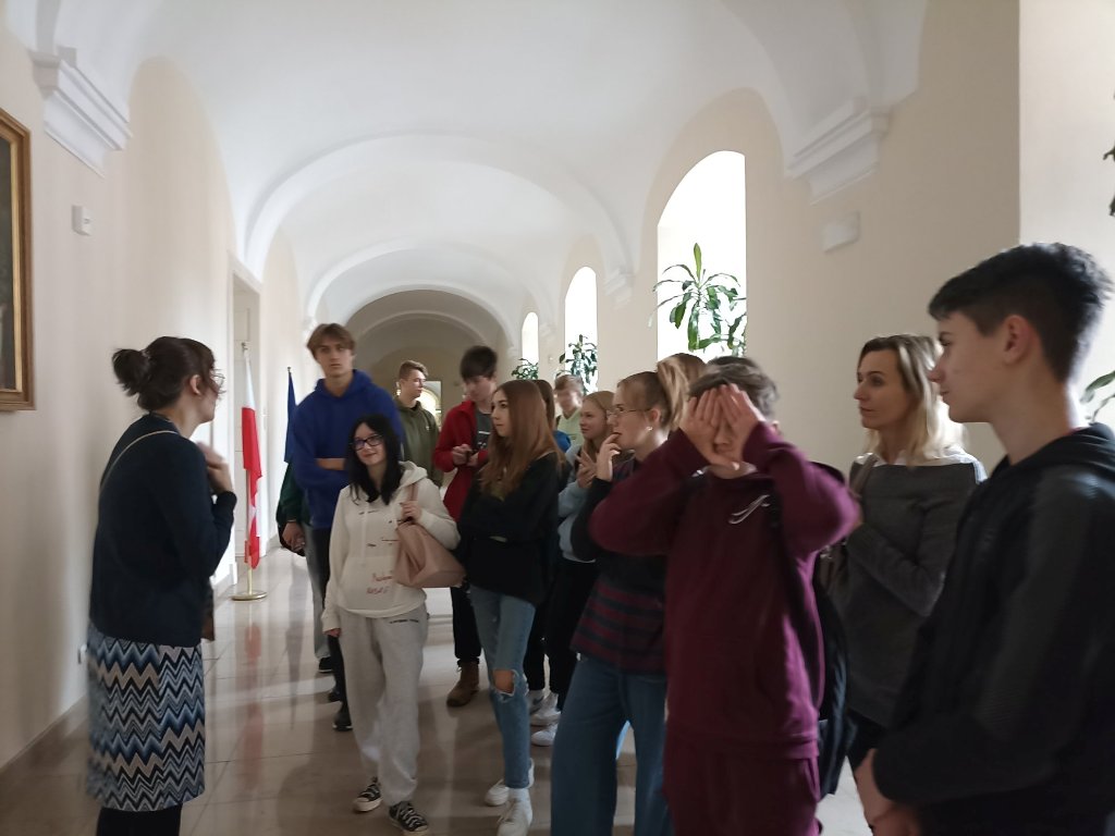 Malinowa, błękitna i biała… Młodzież zobaczyła wyjątkowe sale spotkań np. z ambasadorami, które ze względu na kolor ścian nazywają się : Malinowa, Błękitna i Biała. Uczniowie dowiedzieli się wielu ciekawostek związanych z historią zabytkowej siedziby naszego miasta.