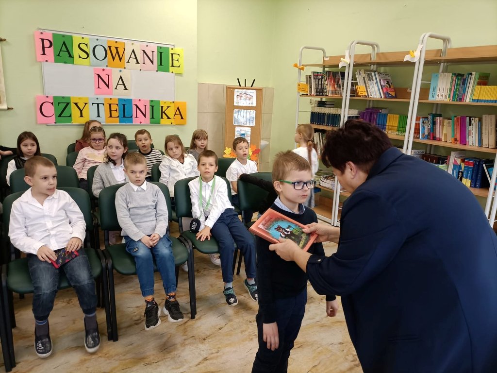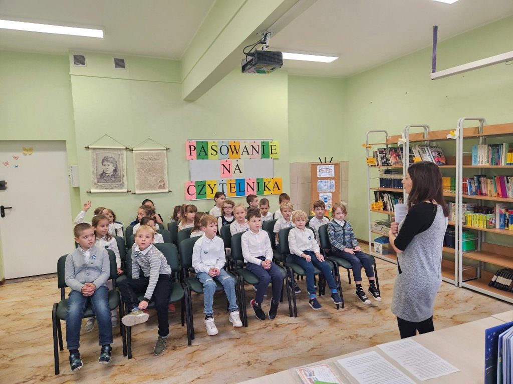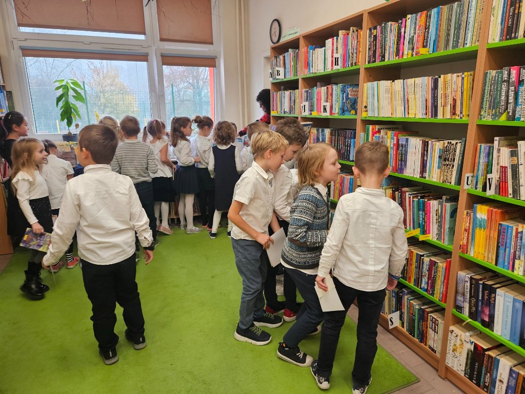 Dnia 5 listopada 2024r. uczniowie klasy 1 zostali przyjęci do grona czytelników biblioteki szkolnej. Głównym celem uroczystości było zachęcenie najmłodszych uczniów do korzystania z biblioteki szkolnej oraz nieustannego rozwijania umiejętności czytania.