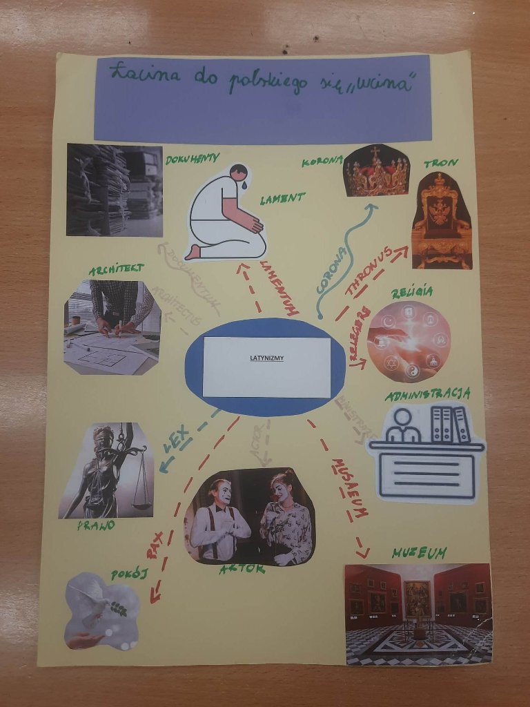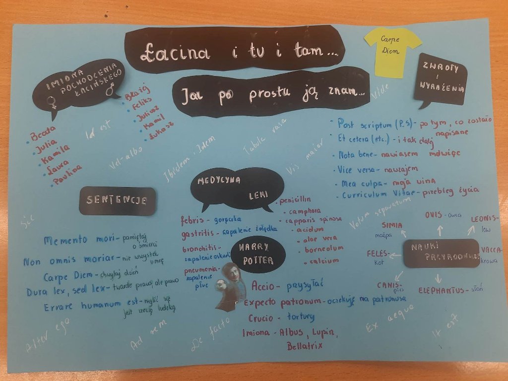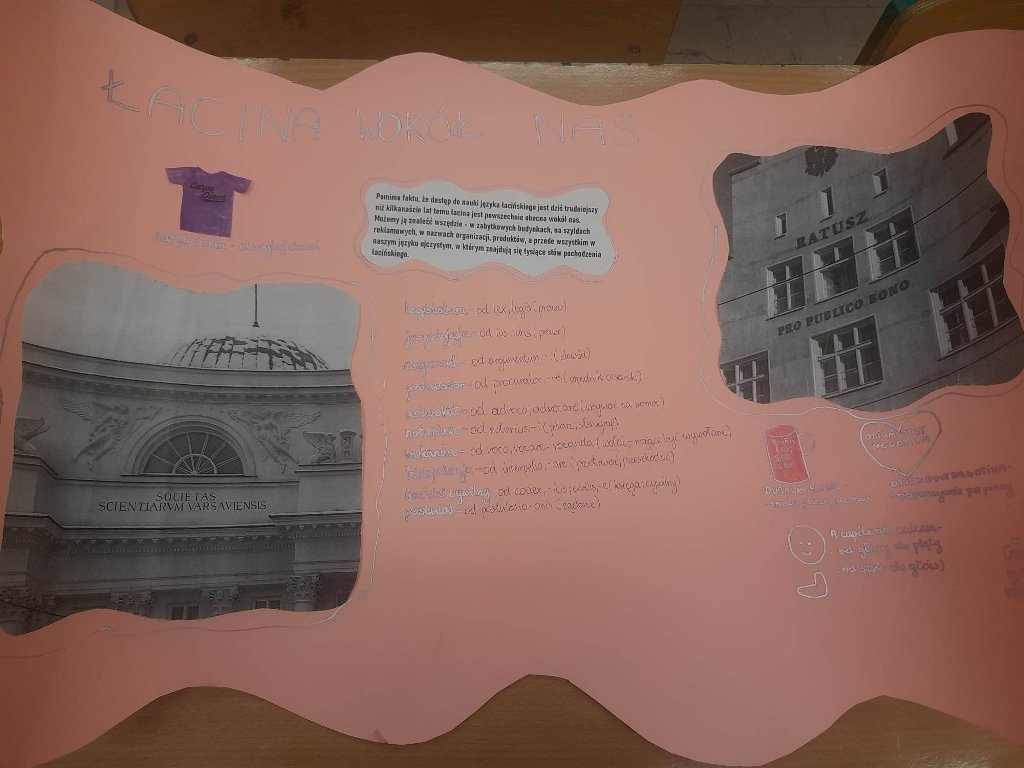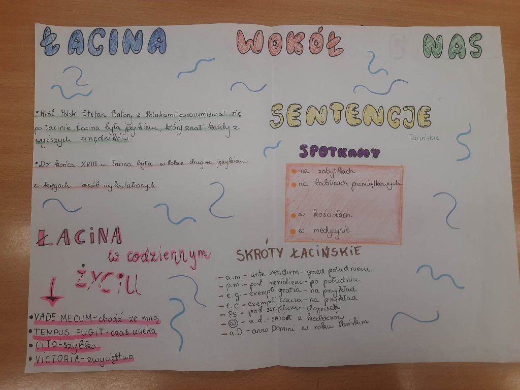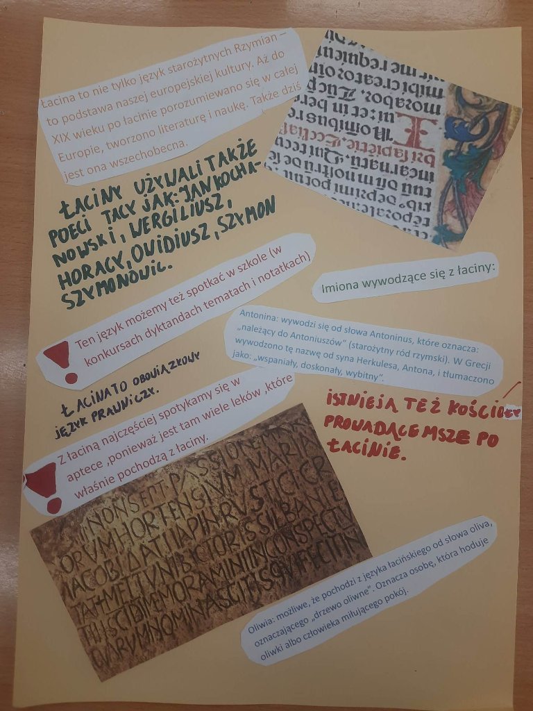 Uczniowie klas 4-8 wykonali plakaty reklamujące łacinę we współczesnym świecie.